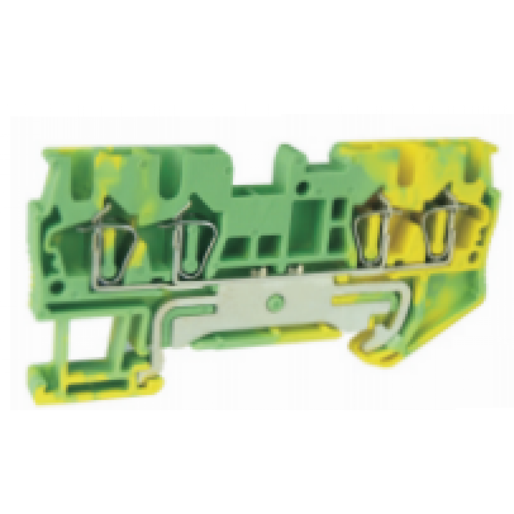 Заземляющая клемма, 4 точки подключения, тип фиксации провода: пружинный, номинальное сечение: 2,5 мм кв., 24A, 800V, ширина: 5 мм, цвет: желто-зеленый, тип монтажа: DIN35