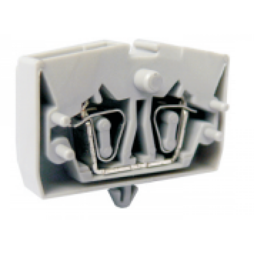 Проходная клемма, MINI, верхний подвод кабеля, 2 точки подключения, тип фиксации провода: пружинный, номинальное сечение: 2,5 мм кв., 24A, 800V,ширина: 5 мм, цвет: серый, тип монтажа: якорная защелка в панель