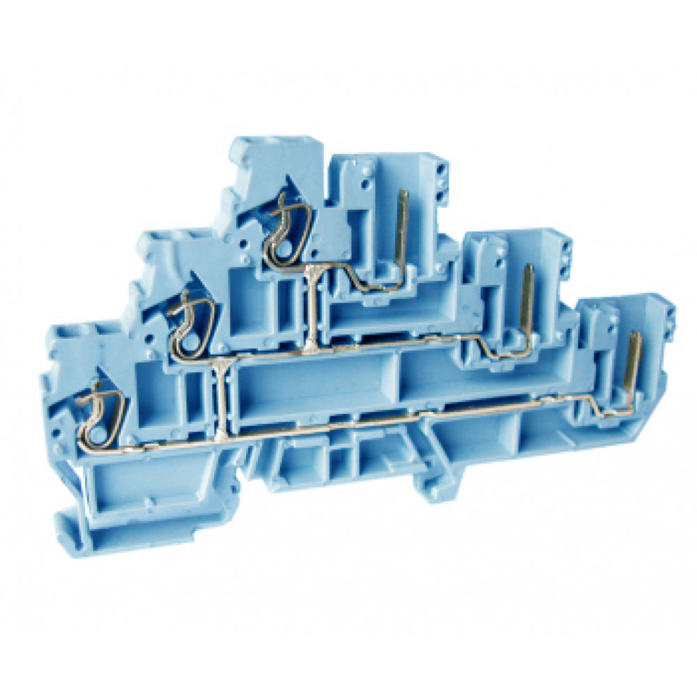 Этажная клемма, 3 этажа, тип фиксации провода: пружинный, номинальное сечение: 2,5 мм кв., 24A, 500V, ширина: 5 мм, цвет: синий, тип монтажа: DIN35