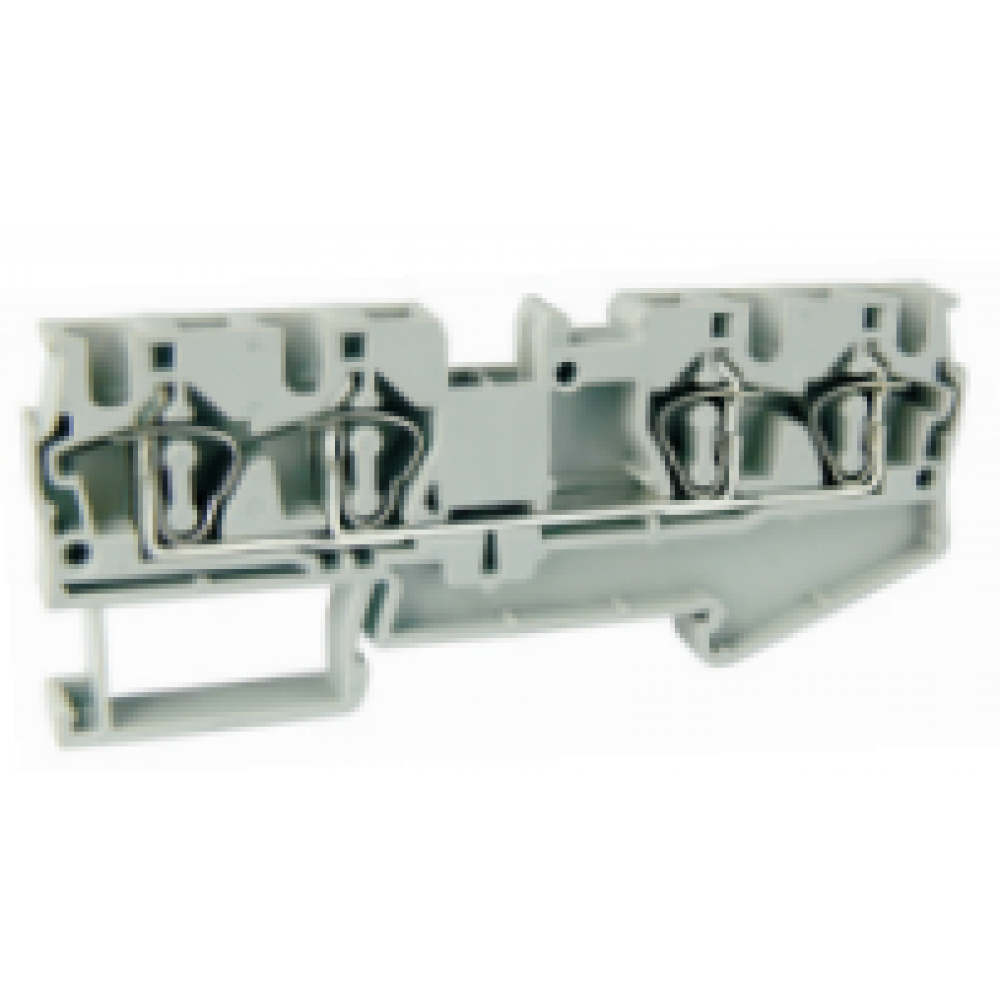Проходная клемма, 4 точки подключения, тип фиксации провода: пружинный, номинальное сечение: 4 мм кв., 40A, 800V, ширина: 6,2 мм, цвет: серый, тип монтажа: DIN35, стандарт GB/T14048.1,