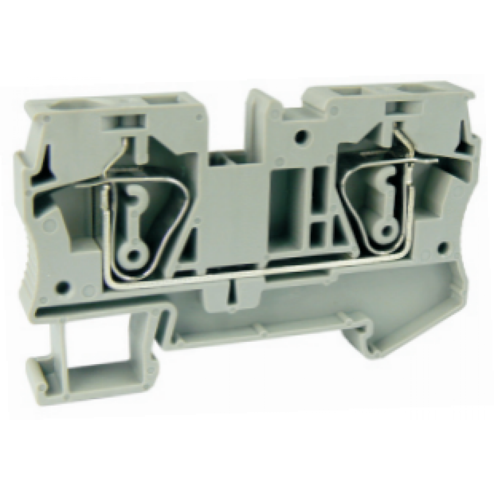 Проходная клемма, тип фиксации провода: пружинный, номинальное сечение: 6 мм кв., 41A, 1000V, ширина: 8 мм, цвет: серый, тип монтажа: DIN35