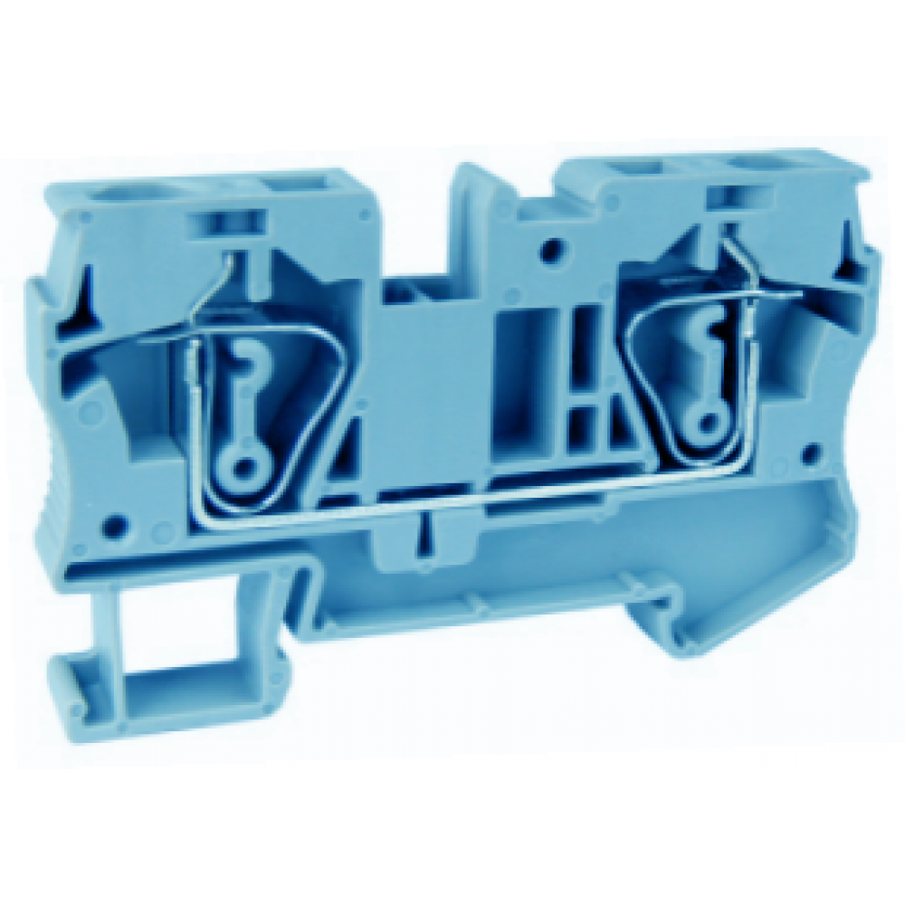 Проходная клемма, тип фиксации провода: пружинный, номинальное сечение: 6 мм кв., 41A, 1000V, ширина: 8 мм, цвет: синий, тип монтажа: DIN35