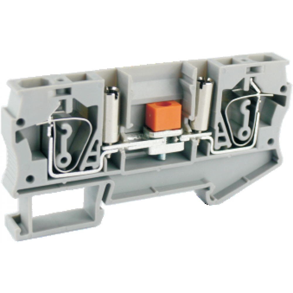 Измерительная клемма, тип фиксации провода: пружинный, номинальное сечение: 6 мм кв., 41A, 500V, ширина: 8,2 мм, цвет: серый, тип монтажа: DIN35