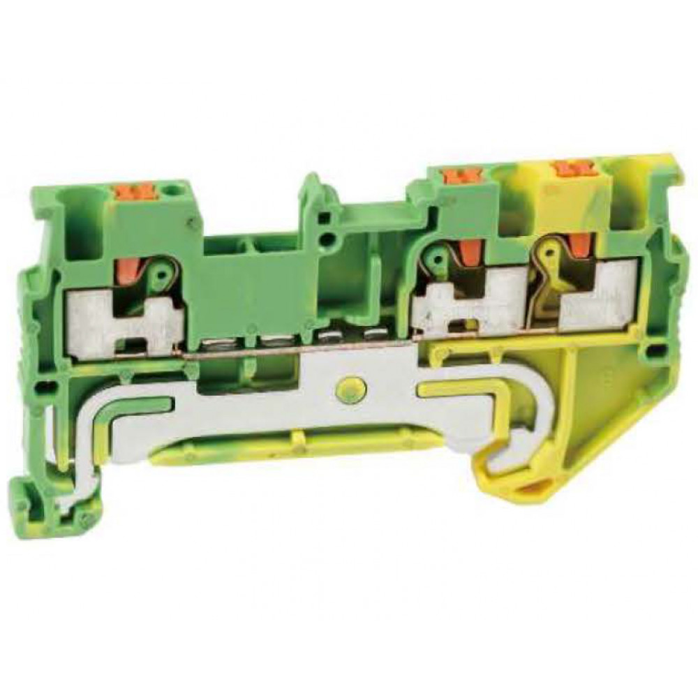 Заземляющая клемма, 3 точки подключения, тип фиксации провода: Push-in, номинальное сечение: 1,5 мм кв., 500V, ширина: 3,5 мм, цвет: желто-зеленый, тип монтажа: DIN35