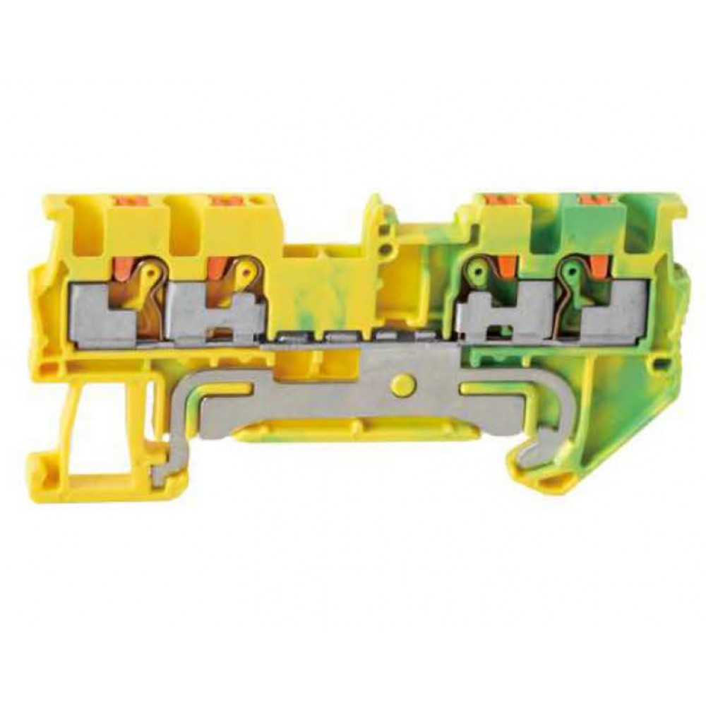 Заземляющая клемма, 4 точки подключения, тип фиксации провода: Push-in, номинальное сечение: 1,5 мм кв., 17,5A, 500V, ширина: 3,5 мм, цвет: желто-зеленый, тип монтажа: DIN35