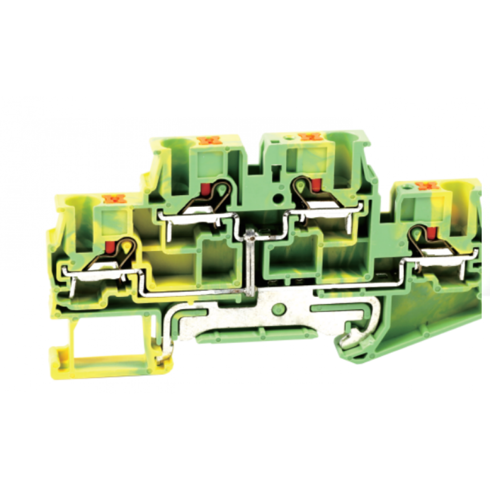 Заземляющая этажная клемма, 2 этажа, тип фиксации провода: Push-in, номинальное сечение: 4 мм кв., ширина: 6,2 мм, цвет: желто-зеленый, тип монтажа: DIN35