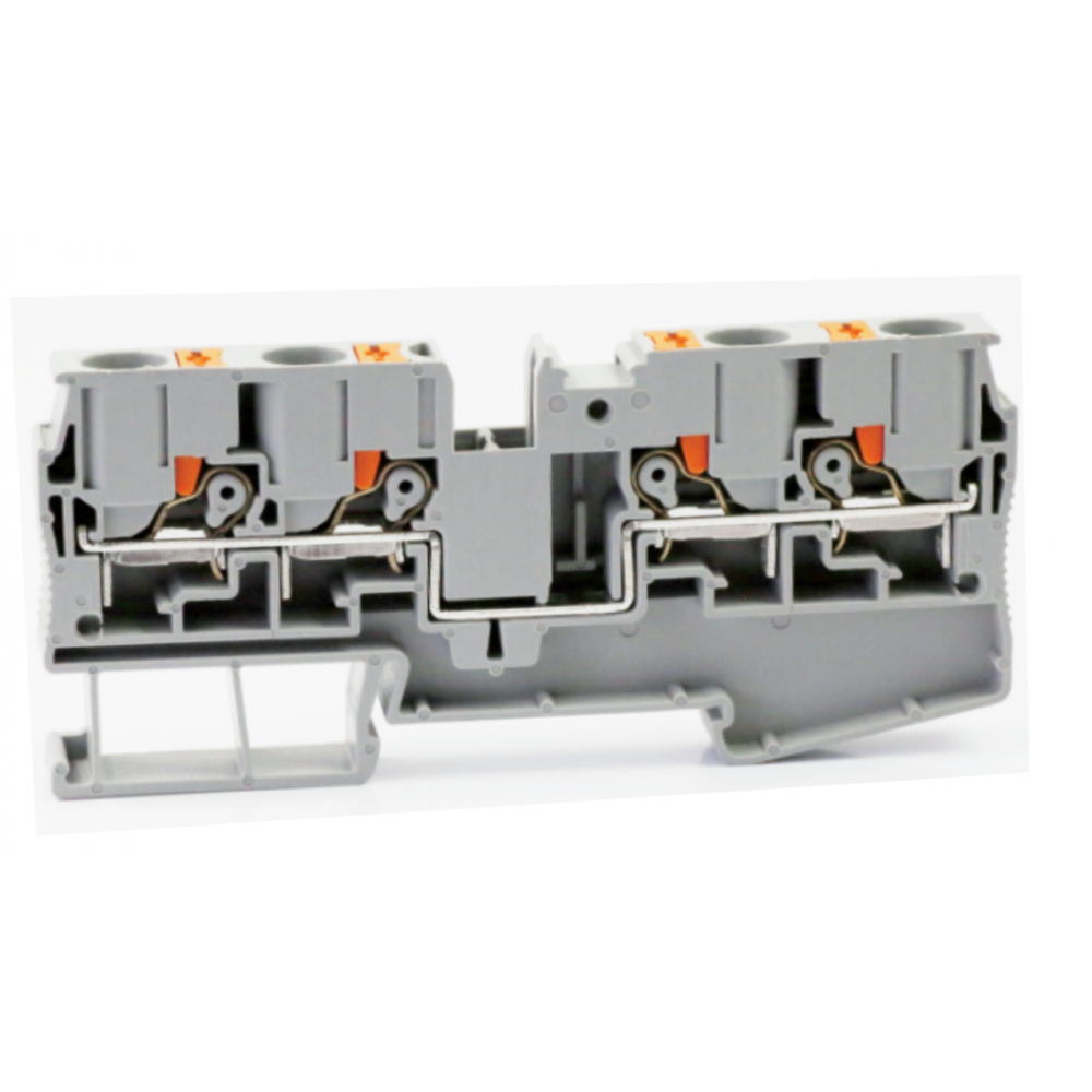 Проходная клемма UJ6-6/2X2, Проходная клемма, 4 точки подключения, тип фиксации провода: Push-in, номинальное сечение: 6 мм кв., 41A, 1000V, ширина: 8,2 мм, цвет: серый, тип монтажа: DIN35