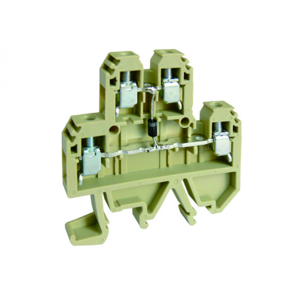 Этажная клемма, 2 этажа, с диодом, тип фиксации провода: винтовой, номинальное сечение: 4 мм кв., 32A, 500V, ширина: 6 мм, цвет: бежевый, тип монтажа: DIN35