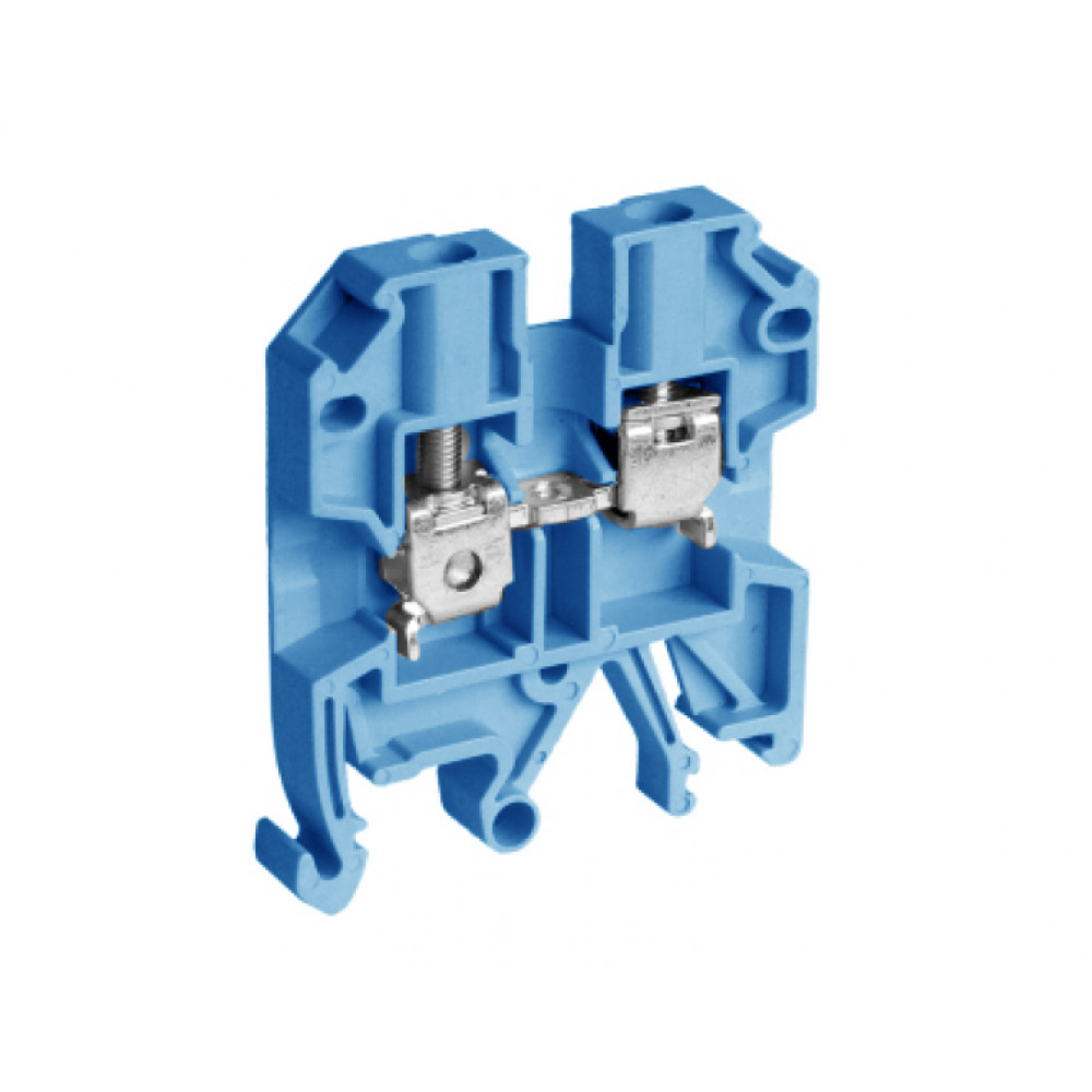 Проходная клемма, тип фиксации провода: винтовой, номинальное сечение: 4 мм кв., 32A, 800V, ширина: 6,2 мм, цвет: синий, тип монтажа: DIN35, винтовая перемычка, зажимная клетка: латунь