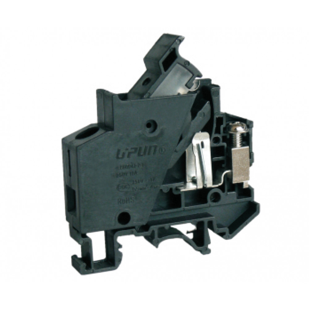 Барьерная клемма UTD-4RDX250, Предохранительная барьерная клемма, тип предохранителя: 6x25, LED 250V, тип фиксации провода: винтовой, номинальное сечение: 4 мм кв., до 10A, 250V, ширина: 14,2 мм, цвет: черный, тип монтажа: DIN35