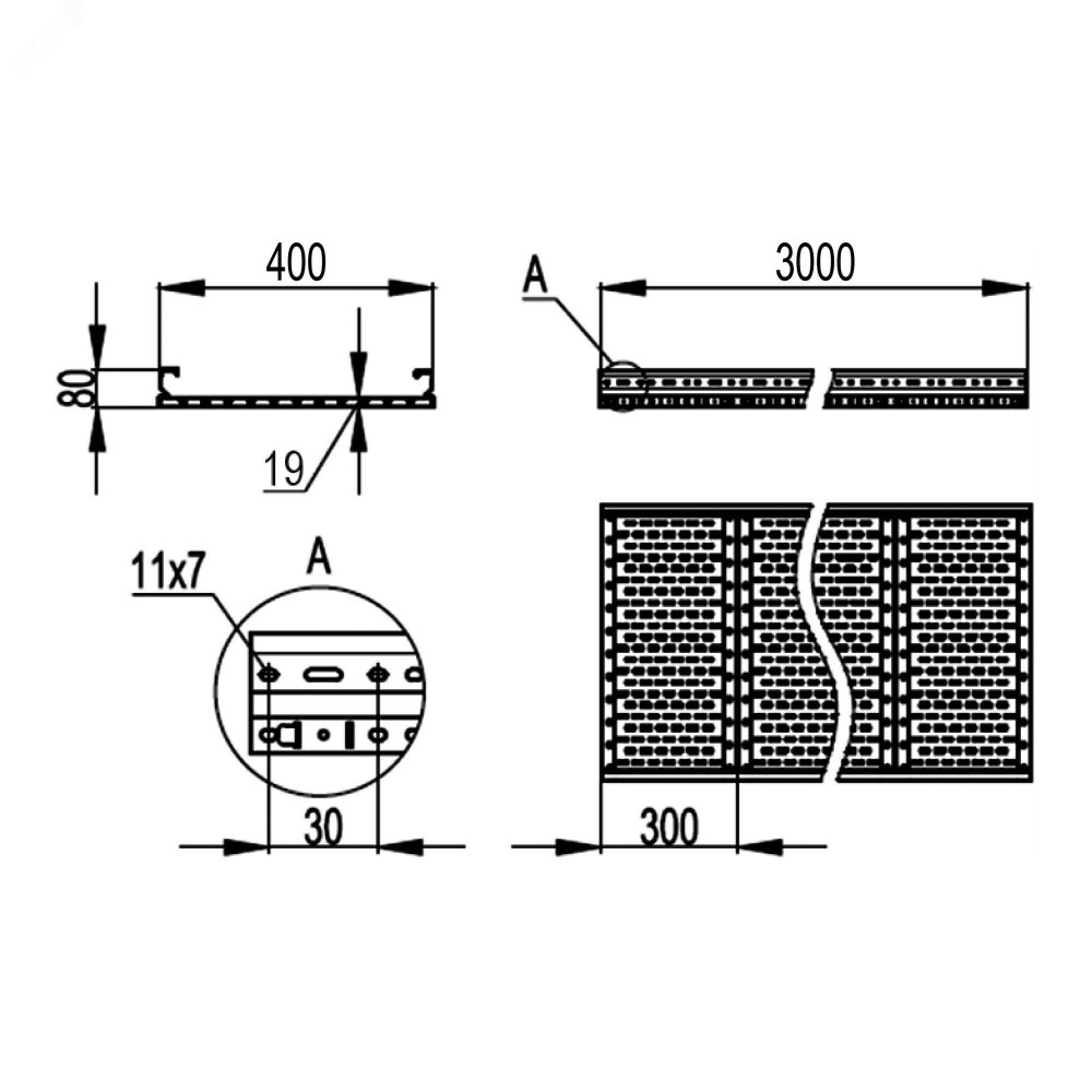 Описание Лоток листовой 80х400 лонжерон 1.5мм L=3000мм USM384