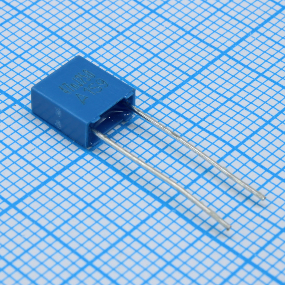 Конденсатор металлоплёночный полиэтилентерефталатный 0.047мкФ 250В ±5% (7.3х3.5х8мм) шаг выводов 5мм 125°С автомобильного применения лента в коробке