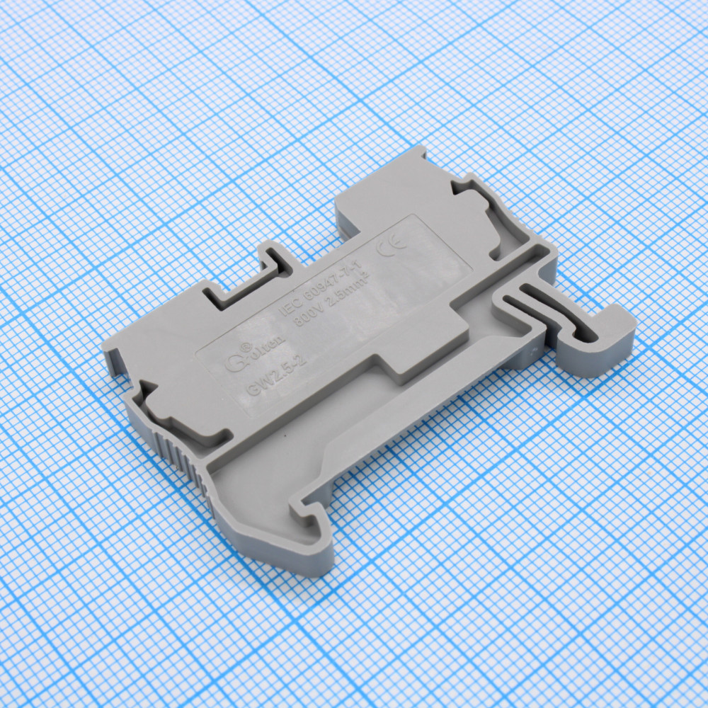 GW2.5-2-GY, Проходная клемма, тип фиксации провода: пружинный, номинальное сечение: 2,5 мм кв., 24А, 800V, ширина: 5 мм, цвет: серый, тип монтажа: DIN35
