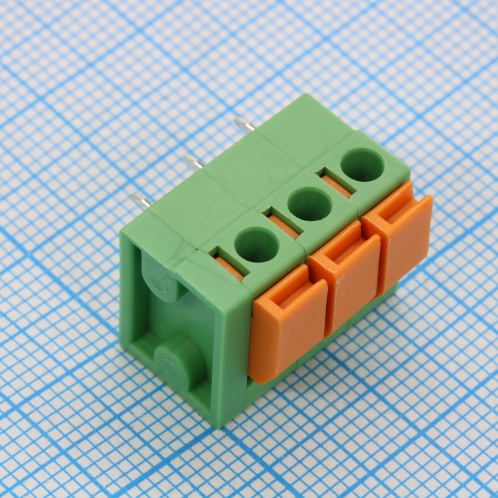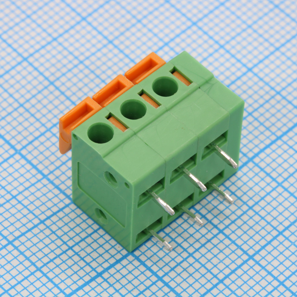 Нажимной безвинтовой клеммный блок 3 контакта. Зажим типа торцевой контакт. Серия DG142R-5.08