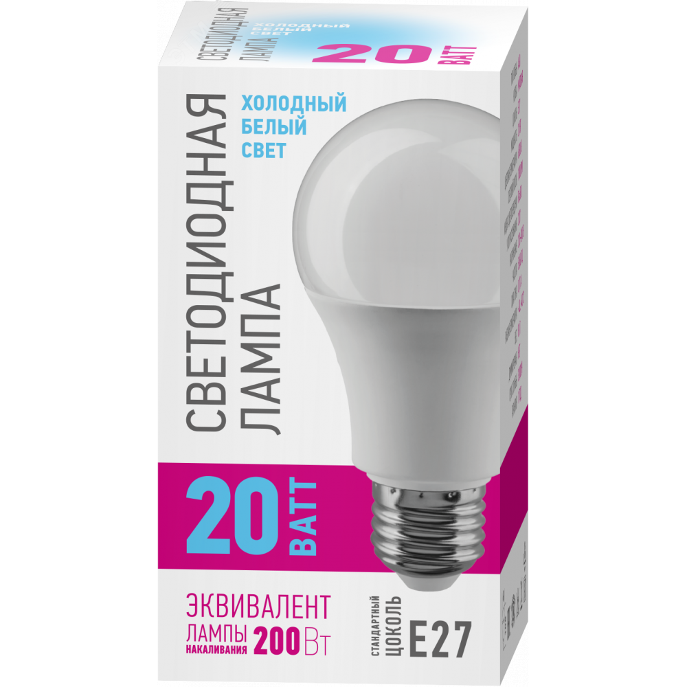 Лампа светодиодная 20вт OLL-A60-20-230-6.5K-E27-PROMO ОНЛАЙТ 32028, Лампа светодиодная