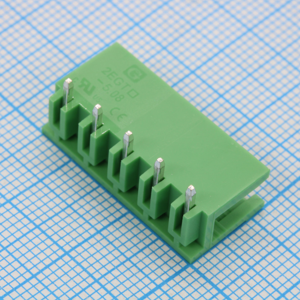 Разъемный клеммный блок на плату, 5 контактов. Серия 2EGTR-5.08