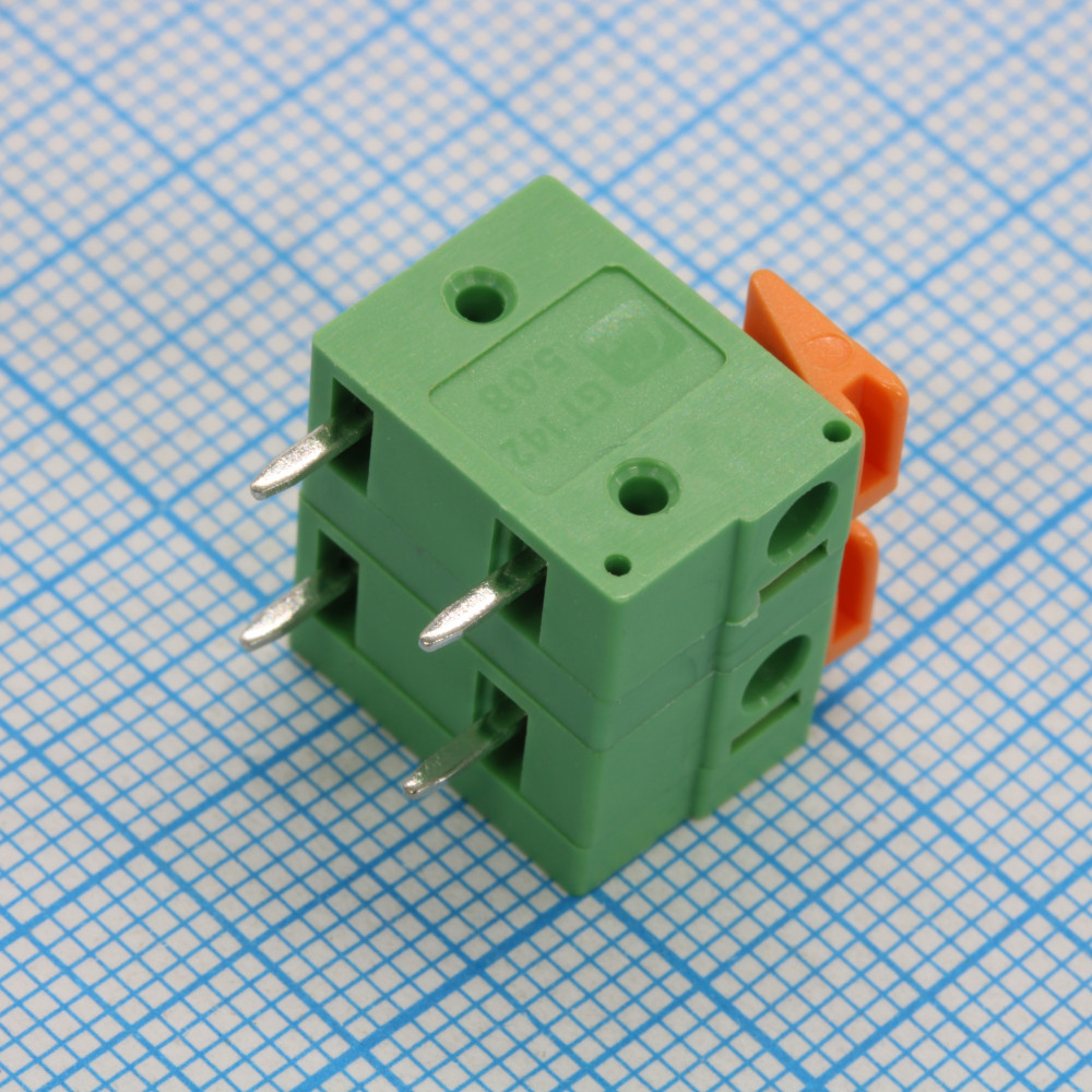 Доставка GT142R-7.62-02P-14-00 , Нажимной безвинтовой клеммный блок 2 контакта. Зажим типа торцевой контакт. Серия GT142R-7.62