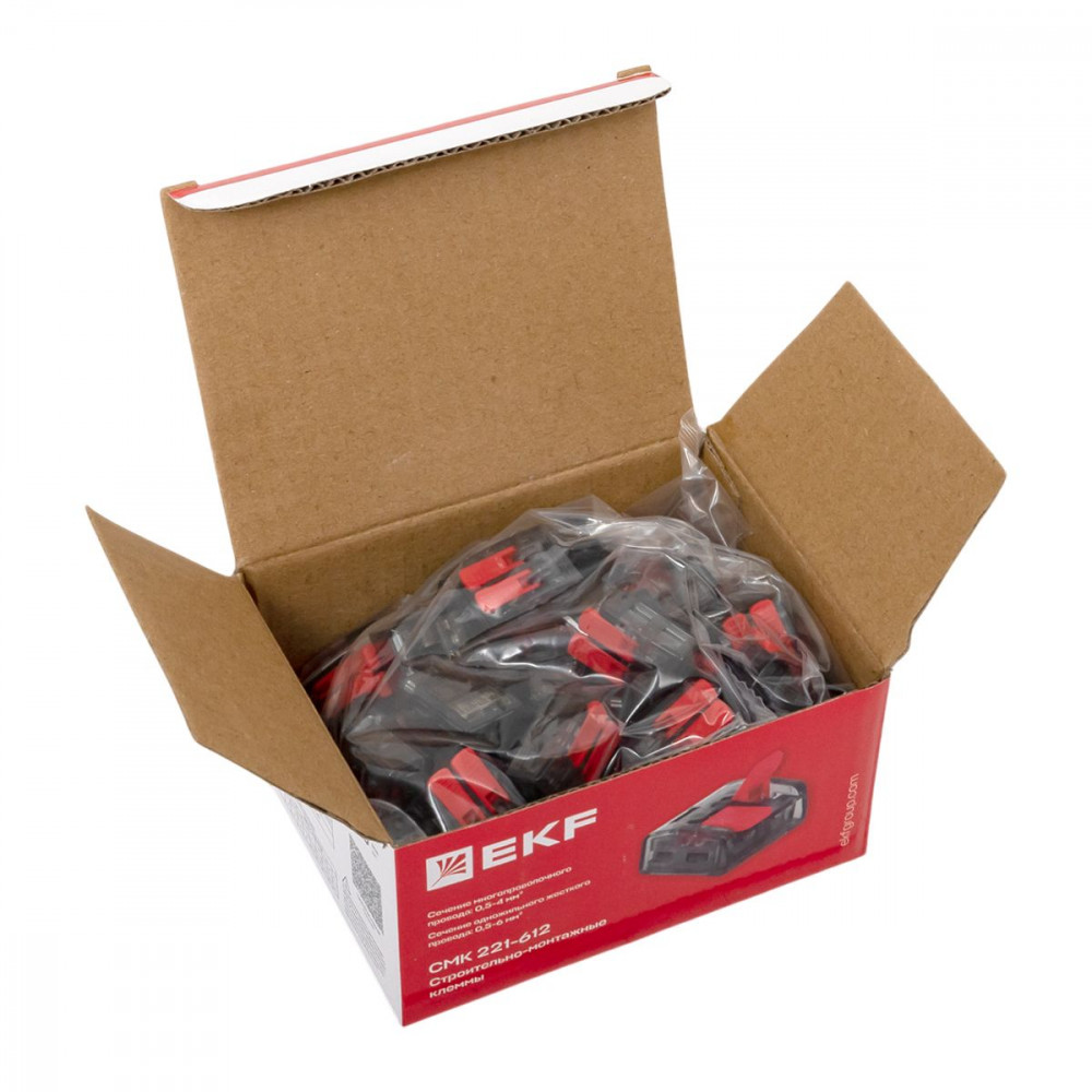 Доставка Строительно-монтажная клемма СМК 221-612 с рычагом 2 отверстия 0.5-4.0(6) мм2 EKF PROxima plc-smk-221-612