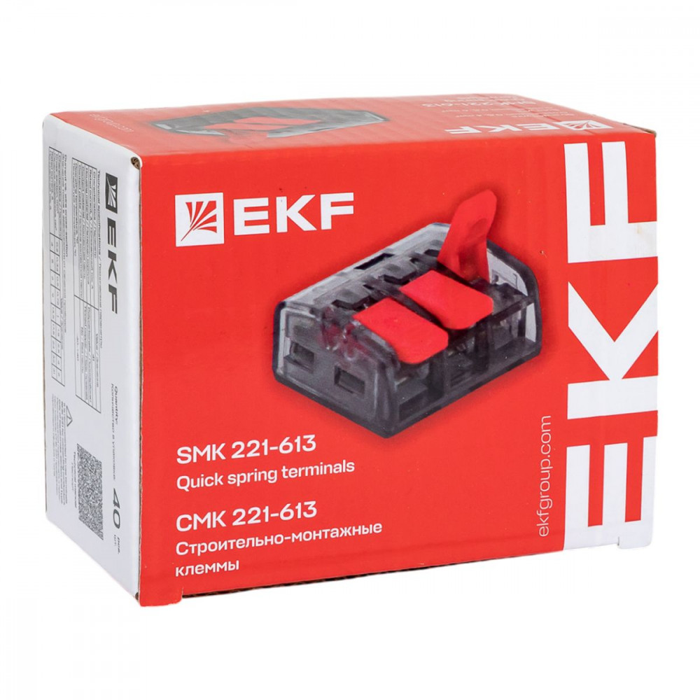 Строительно-монтажная клемма СМК 221-613 с рычагом 3 отверстия 0.5-4.0(6) мм2 EKF PROxima plc-smk-221-613 →