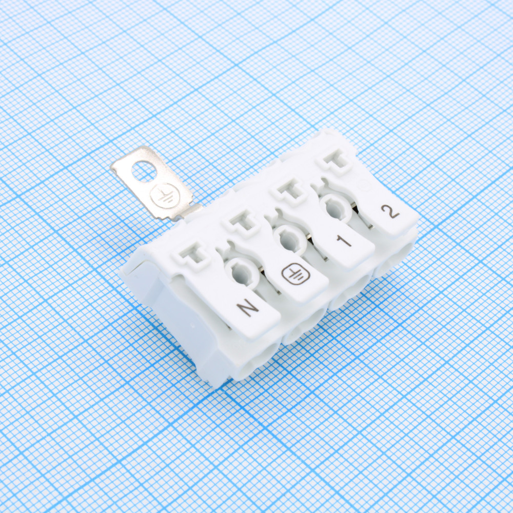 Электромонтажный клеммник на 4 контакта. с заземляющими частями, монтажными ножками, печатью