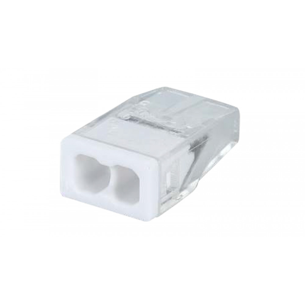 Клемма пружинная, строительная, EU-242, Клемма пружинна, универсальная, строительная, 2 полюса, с контактной пастой, сечение проводника 0,5 - 2,5 мм кв., 400V, 24A, цвет: прозрачный/белый