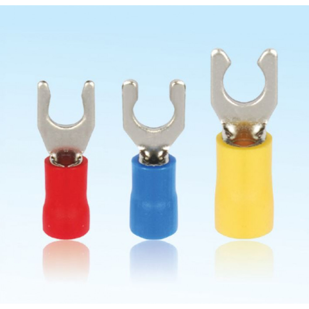 Наконечник вилочный, НВИз 6.0-3, 100532, Кабельный наконечник, вилочный, замковый, медь, НВИз 6.0-3 (сечение проводника 4 - 6 мм кв., ширина вилки 3 мм), изолированный, цвет: желтый, в упаковке 100 штук