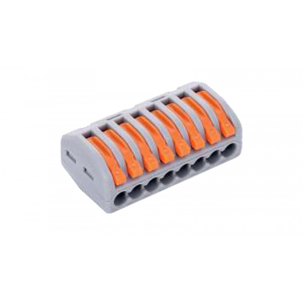 Рычажная клемма, соединительная, универсальная, 8 полюсов, сечение проводника 0,08 - 4,0 мм кв., 250V, 32A,цвет корпуса: серый, цвет рычагов: оранжевый,в упаковке 50 штук (Аналог 222-418)