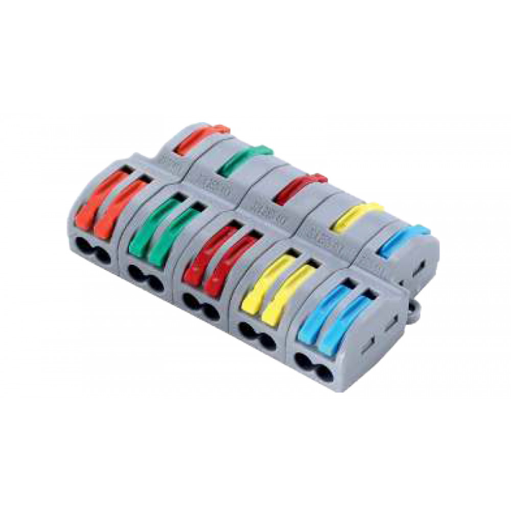 Доставка Рычажная клемма, разветвительная, FD-510 , Рычажная клемма, разветвительная, с монтажными фланцами, 5 x 1 входа, 5 x 2 выхода, сечение проводника 0,08 - 4,0 мм кв., 250V, 32A, цвет корпуса: серый, цвет рычагов:оранжевый, зеленый, красный, желтый, синий