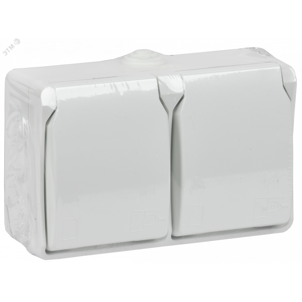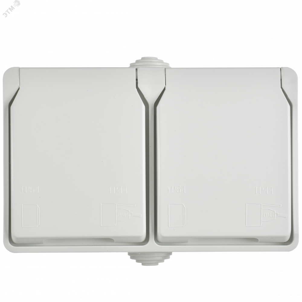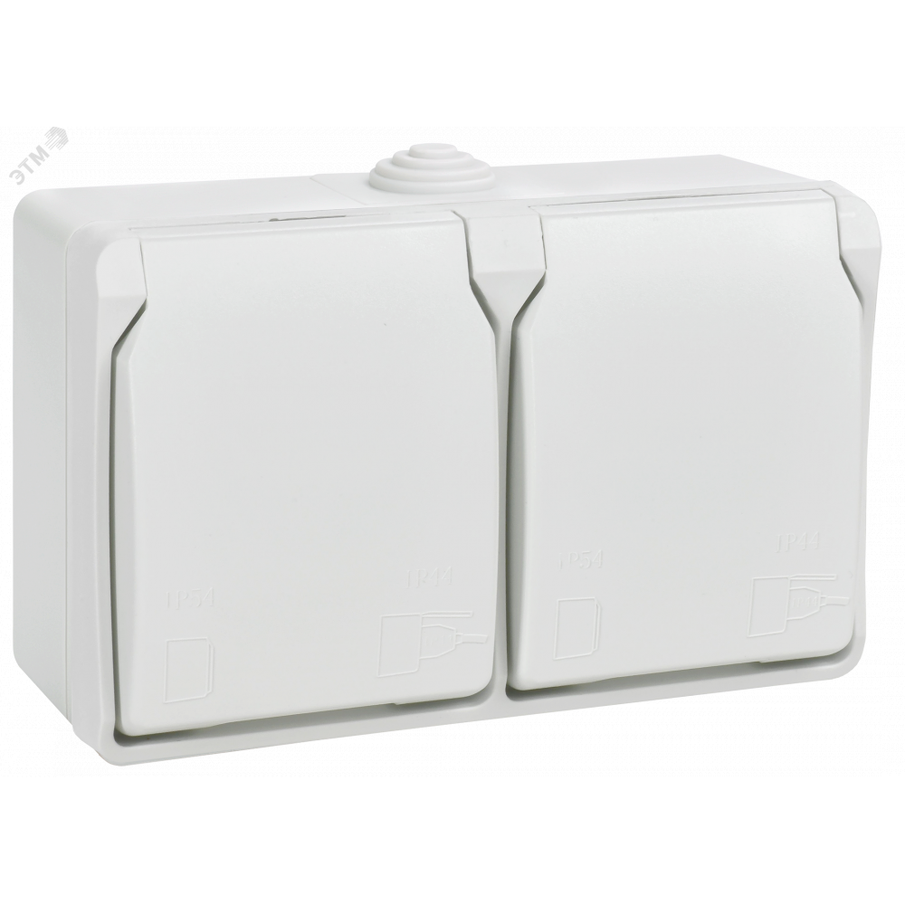 FORS Розетка 2-местная с заземлением для открытой установки 16А IP54 РСб22-3-ФБ белый ERS22-K01-16-54-DC, Розетка открытого монтажа
