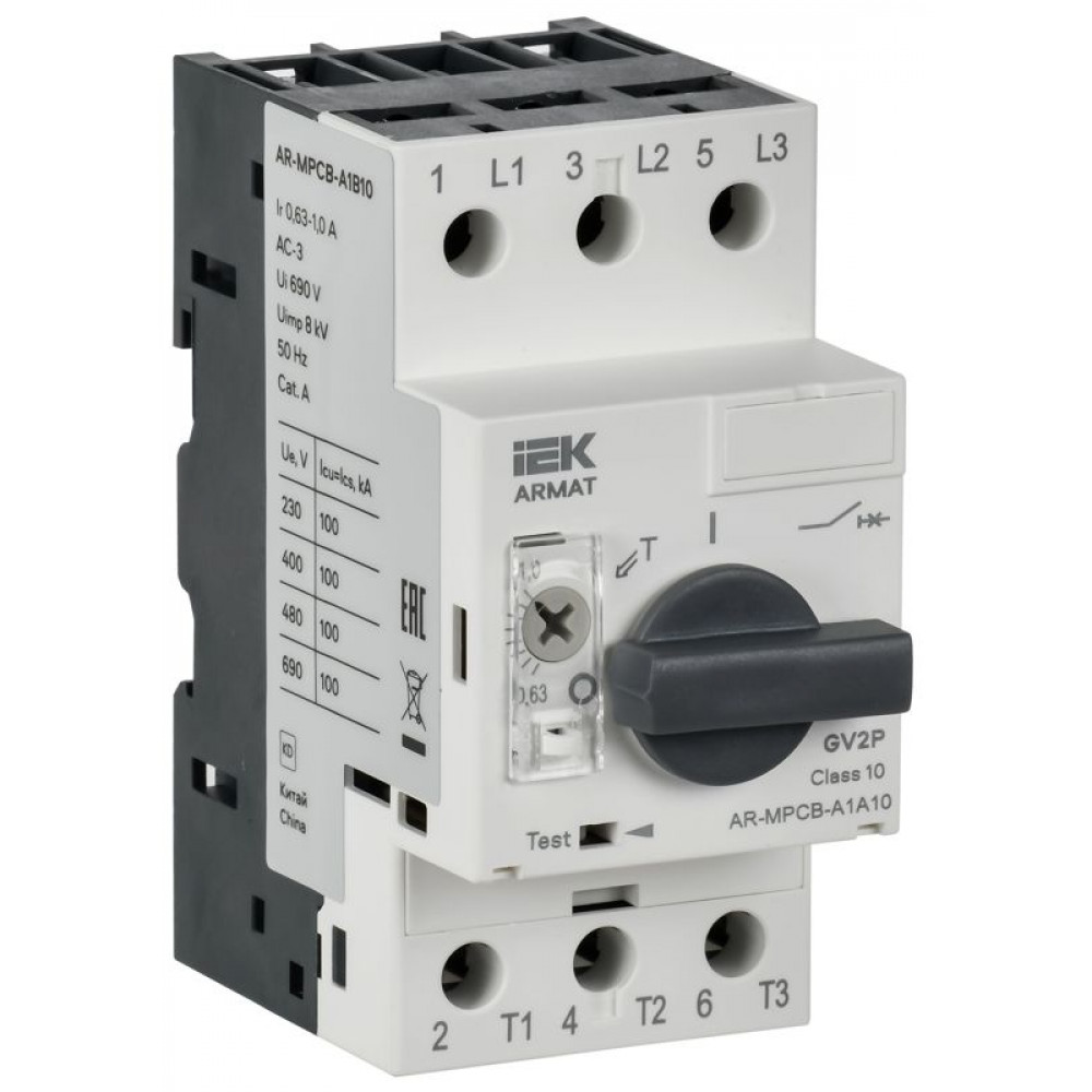 Автоматический выключатель защиты двигателя ARMAT A1 GV2P 0,63-1А IEK AR-MPCB-A1B10, Выключатель автоматический для защиты двигателя