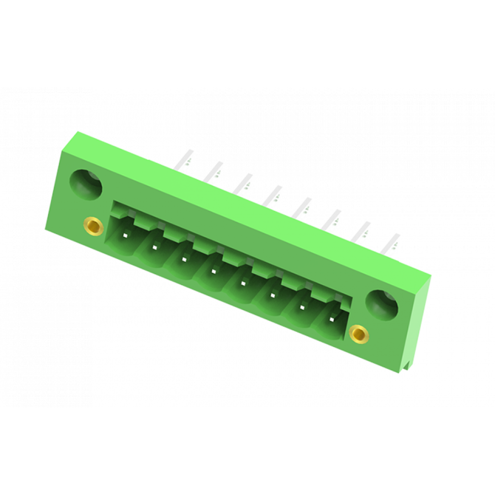 Доставка Вилочный разъем в панель MC-PE5.08V02-F , Вилочный разъем, в панель, шаг: 5.08 мм, 2 полюса, фиксация провода пайкой, исполнение: с монтажными фланцами, 320V, 12A, цвет: зеленый