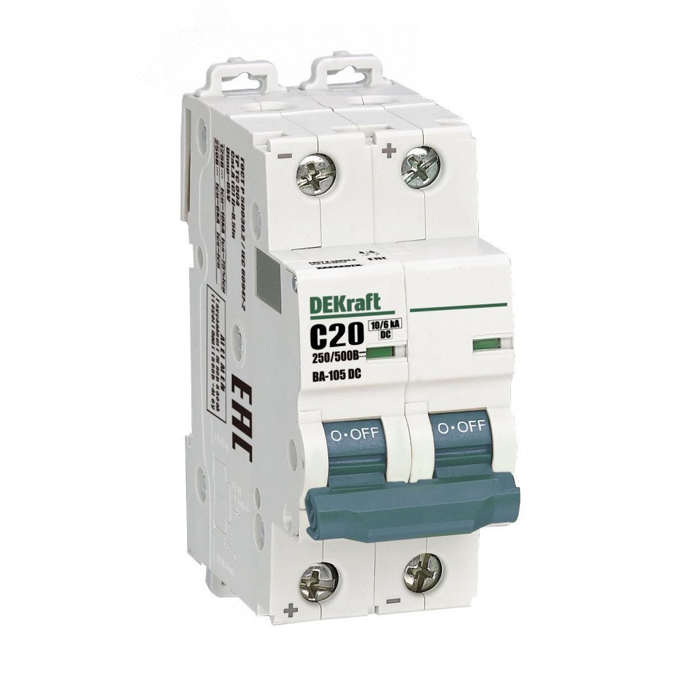 Выключатель автоматический 2P C кривая 20A 500В DC ВА-105 13392DEK, Выключатель автоматический модульный