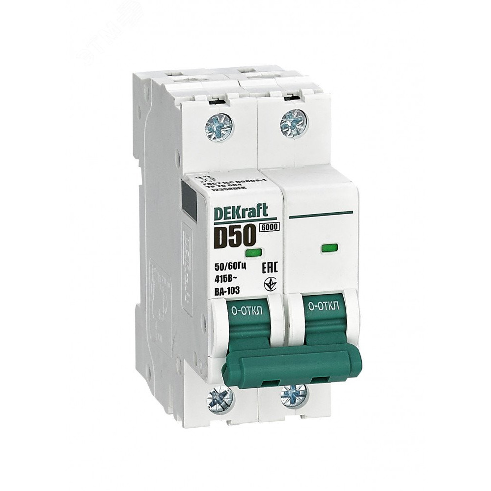 Описание Выключатель автоматический модульный 2п D 50А 6кА ВА-103 12358DEK