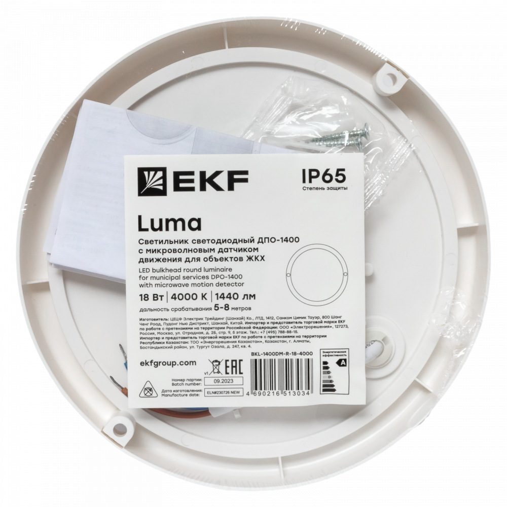 Описание Светильник светодиодный ЖКХ круг ДПО-1400 с микроволновым датчиком движения 18Вт 6500K IP65 LUMA EKF BKL-1400DM-R-18-6500