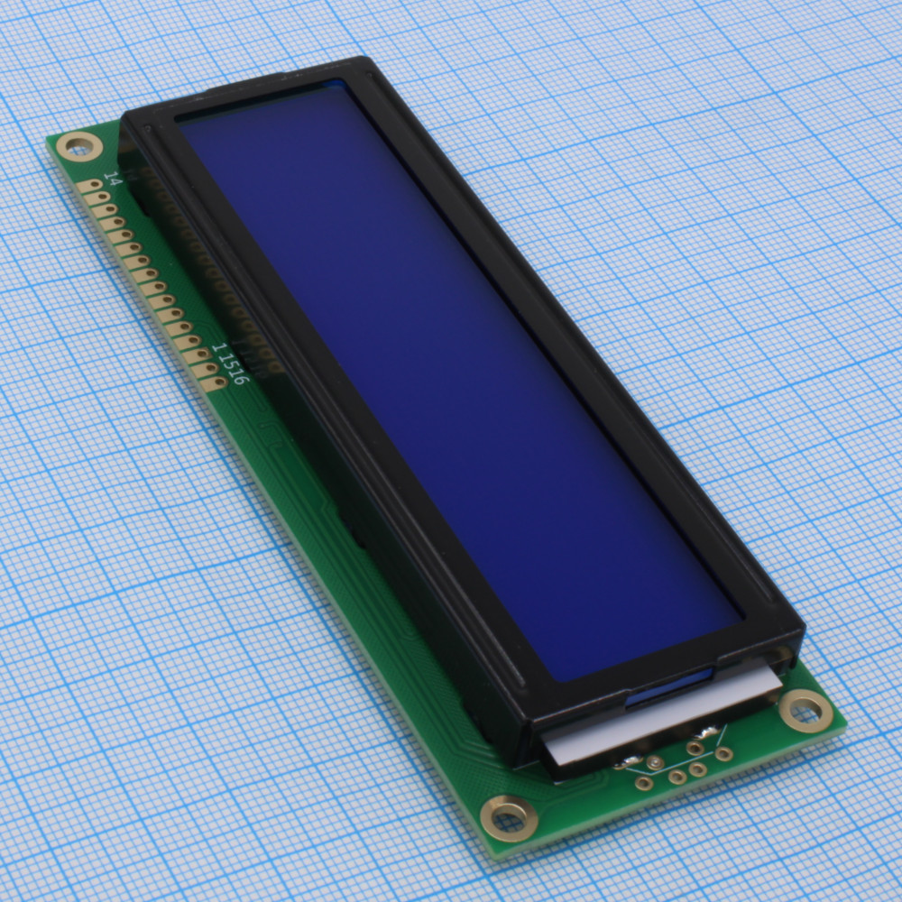 ЖКИ знакосинтезирующий 16 x 2, STN Синий Негативный/прозрачный светодиодная подсветка белая, размеры 122x44 мм, видимая область 99x24 мм, -20...70°C, контактные площадки снизу 16 выводов