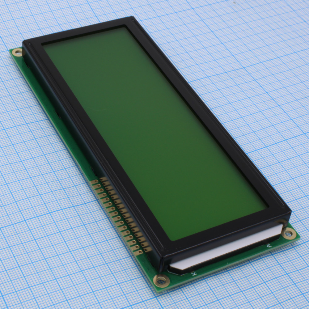 ЖКИ знакосинтезирующий 20 x 4, STN Желто-зеленый Позитивный/прозрачно-отражающий светодиодная подсветка желто-зеленая размеры 146x62.5 мм, видимая область 123.5x43 мм, -20...70°C, контактные площадки сверху 18 выводов