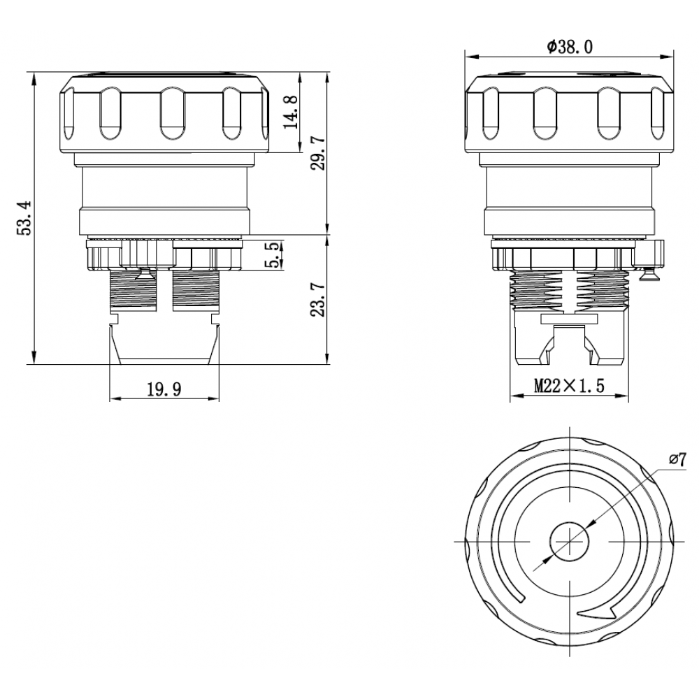 ← Головка кнопки плоская без фиксации, красная M22P-FMRP