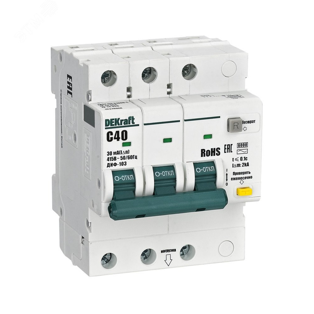Выключатель автоматический дифференциальный 3P 40А 30мА AC х-ка C ДИФ-103 6кА 16378DEK, Дифференциальная защита: УЗО, дифф блок