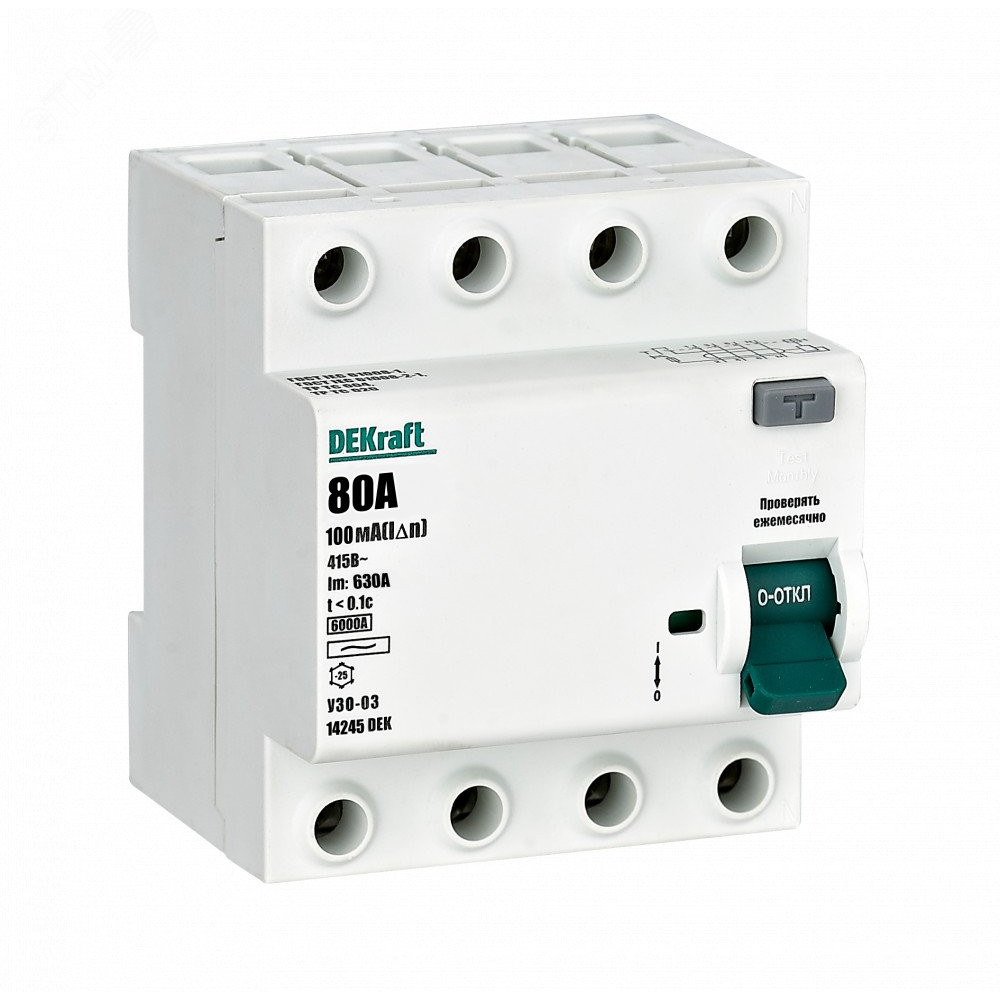 Доставка Выключатель дифференциального тока УЗО 03-6кА-4P-080А-100-AC 14245DEK