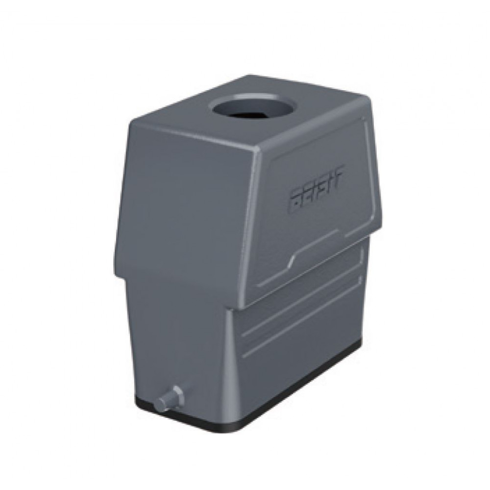 Доставка Крышка разъема H10A-TO-2P-PG21 , Крышка разъема на кабель, типоразмер 10A, с уплотнителем, 1 отверстие с резьбой для кабельных вводов PG21, с верхним расположением, без защелки (упоры под одну защелку), материал корпуса: алюминиевый сплав