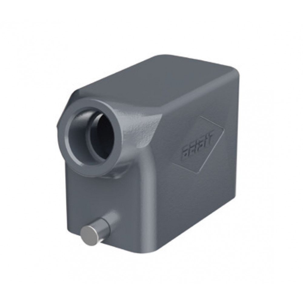 Крышка разъема H10B-SO-2PR-M20, Крышка разъема на кабель, типоразмер 10B, без уплотнителя, 1 отверстие с резьбой для кабельных вводов M20x1,5, с боковым расположением, без защелки (упоры под одну защелку), материал корпуса: алюминиевый сплав