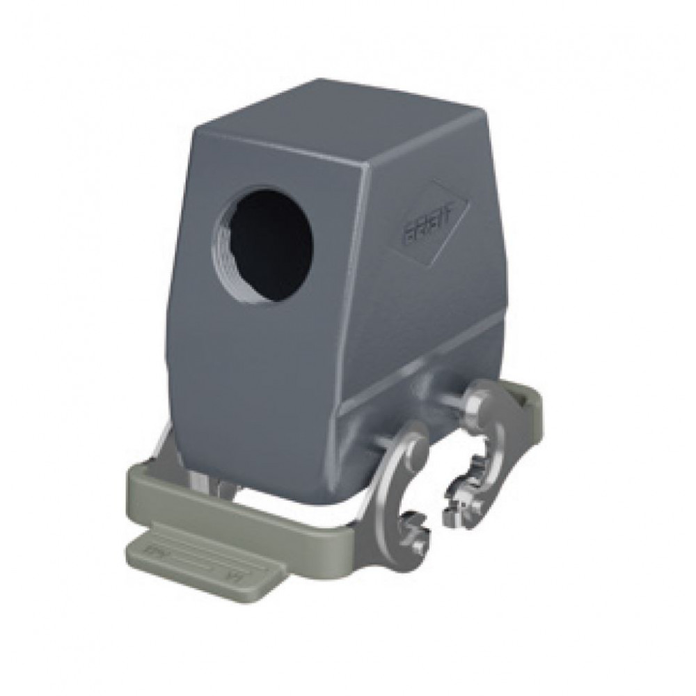 Доставка Крышка разъема H10B-SOH-2L-PG21 , Крышка разъема на кабель, типоразмер 10B, высокое исполнение, без уплотнителя, 1 отверстие с резьбой для кабельных вводов PG21, с боковым расположением, с двумя металлическими защелками, материал корпуса: алюминиевый сплав