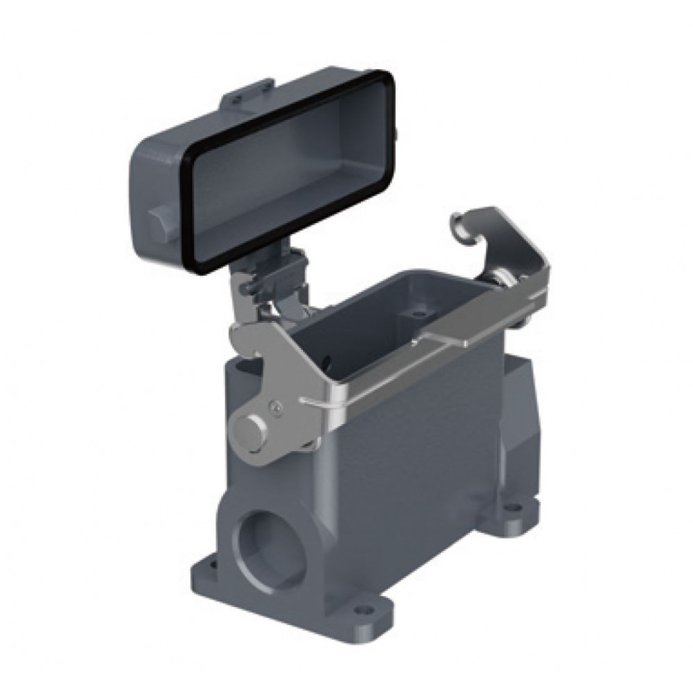 Доставка Закрытое основание разъема H16A-SM-1L-PCG-M25 , Основание разъема на панель, закрытое, типоразмер 16A, без уплотнителя, 1 отверстие с резьбой для кабельных вводов M25x1,5, с одной металлической защелкой, с пластиковой защитной крышкой, материал корпуса: алюминиевый сплав