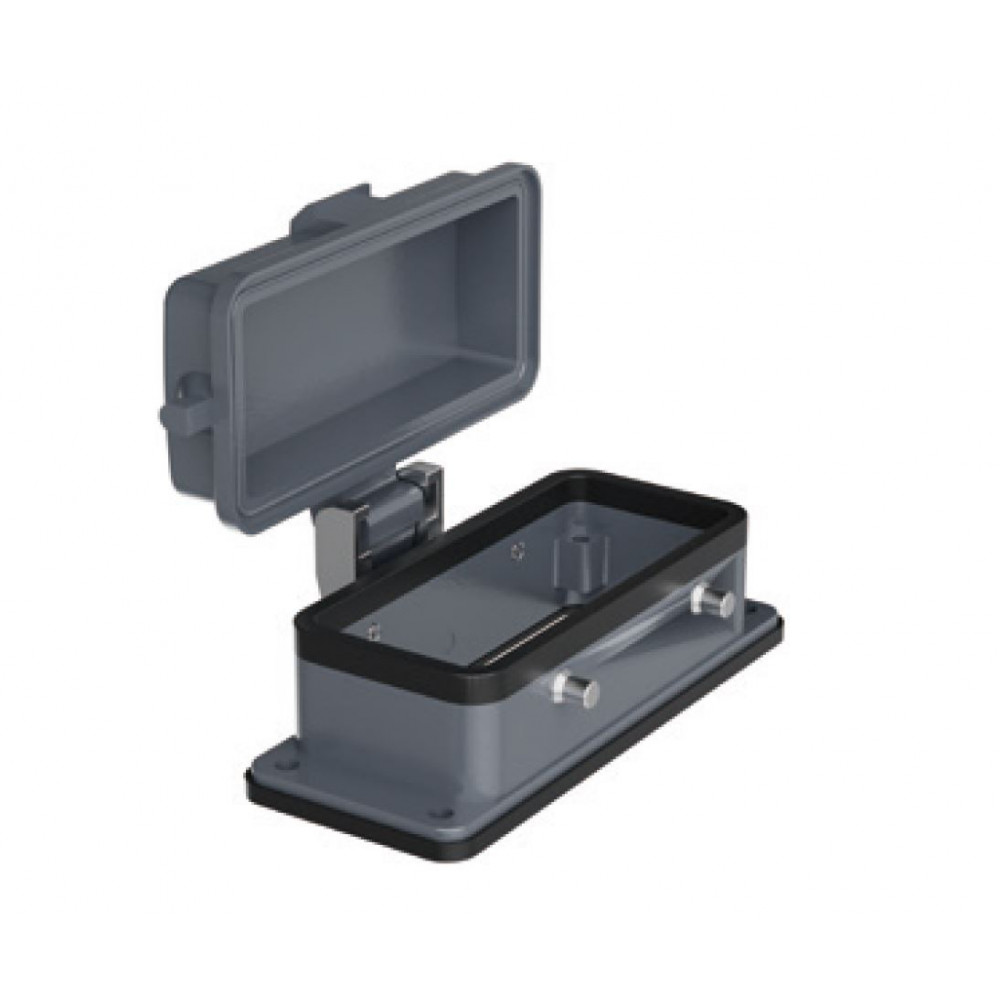 Открытое основание разъема H16B-OM-4PR-PC, Основание разъема на панель, открытое, типоразмер 16B, с уплотнителем, без защелок (упоры для двух защелок), с защитной крышкой, материал корпуса: алюминиевый сплав