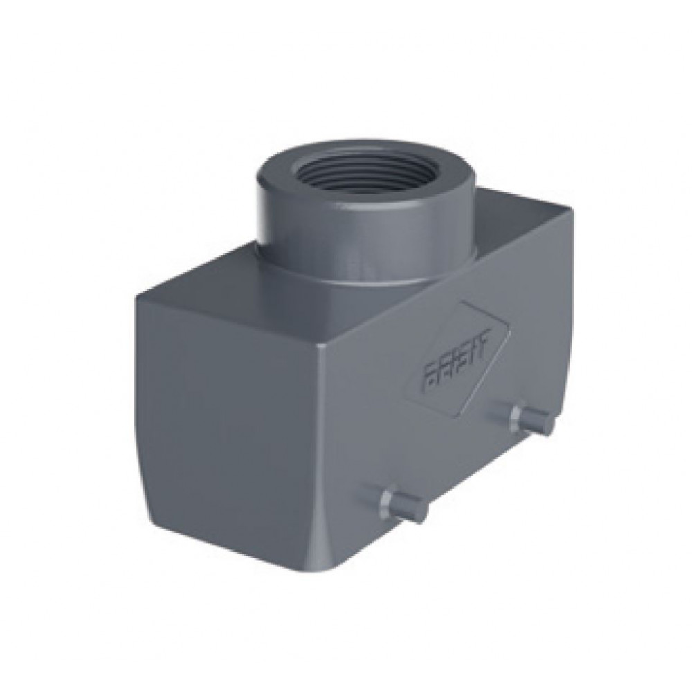 Доставка Крышка разъема H16B-TO-4P-M25 , Крышка разъема на кабель, типоразмер 16B, без уплотнителя, 1 отверстие с резьбой для кабельных вводов M25x1,5, с верхним расположением, без защелок (упоры для двух защелок), материал корпуса: алюминиевый сплав