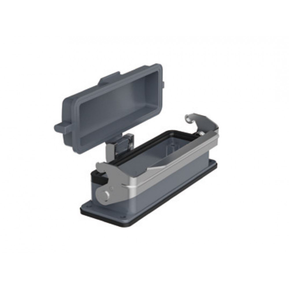 Открытое основание разъема H24B-OM-1L-PC, Основание разъема на панель, открытое, типоразмер 24B, с уплотнителем, с одной металлической защелкой, с пластиковой защитной крышкой, материал корпуса: алюминиевый сплав