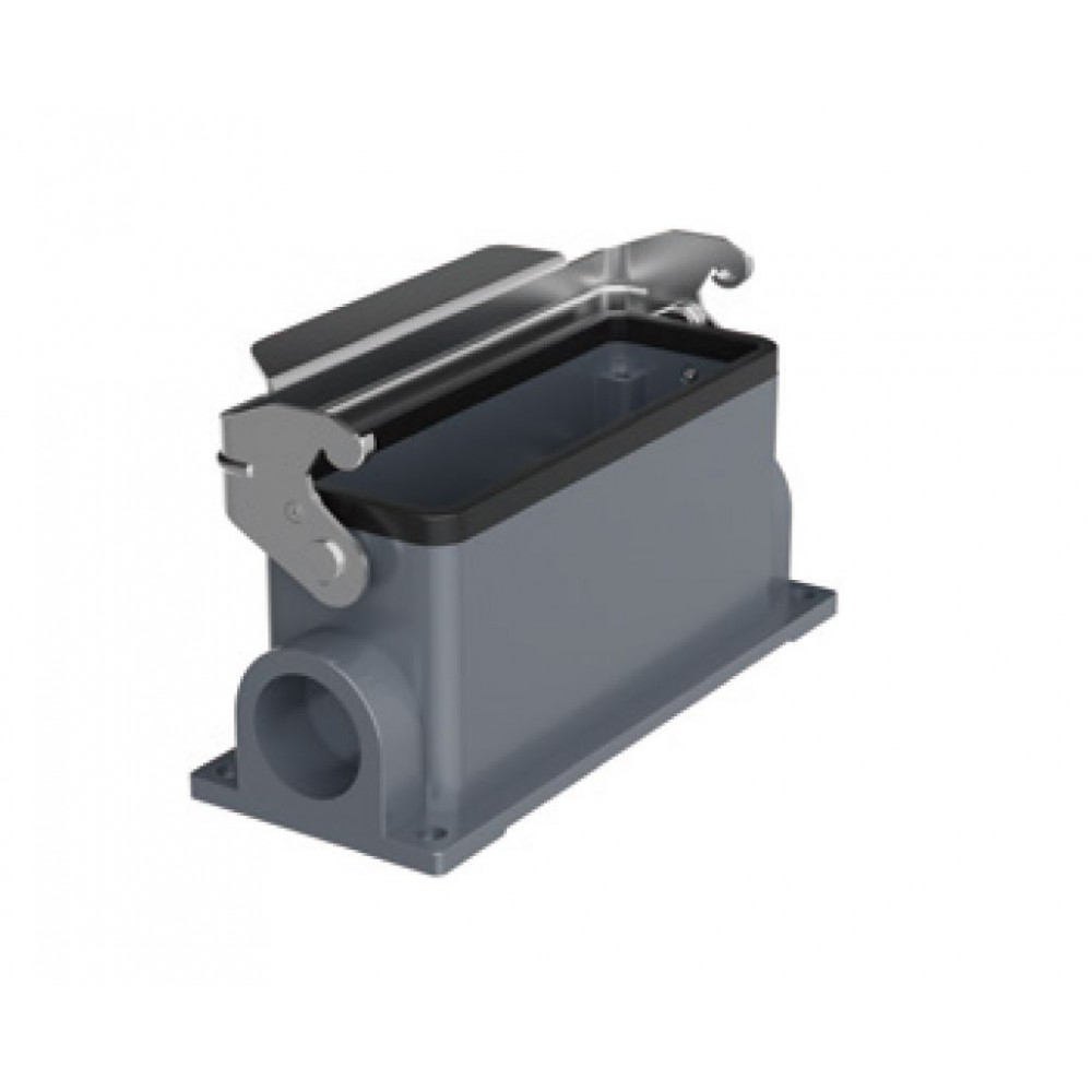 Доставка Закрытое основание разъема H24B-SM-1L-M25 , Основание разъема на панель, закрытое, типоразмер 24B, с уплотнителем, 1 отверстие с резьбой для кабельных вводов M25x1,5, с одной металлической защелкой, без защитной крышки, материал корпуса: алюминиевый сплав