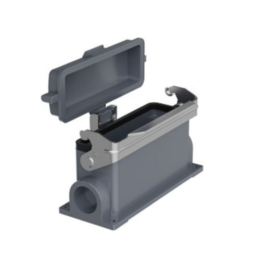 Доставка Закрытое основание разъема H24B-SM-1L-PC-M20 , Основание разъема на панель, закрытое, типоразмер 24B, с уплотнителем, 1 отверстие с резьбой для кабельных вводов M20x1,5, с одной металлической защелкой, с пластиковой защитной крышкой, материал корпуса: алюминиевый сплав