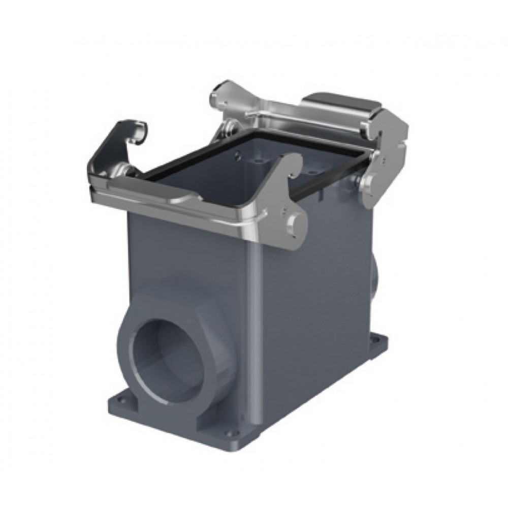 Закрытое основание разъема H32A-SM-2L-PG21, Основание разъема на панель, закрытое, типоразмер 32A, с уплотнителем, 1 отверстие с резьбой для кабельных вводов PG21, с двумя металлическими защелками, без защитной крышки, материал корпуса: алюминиевый сплав