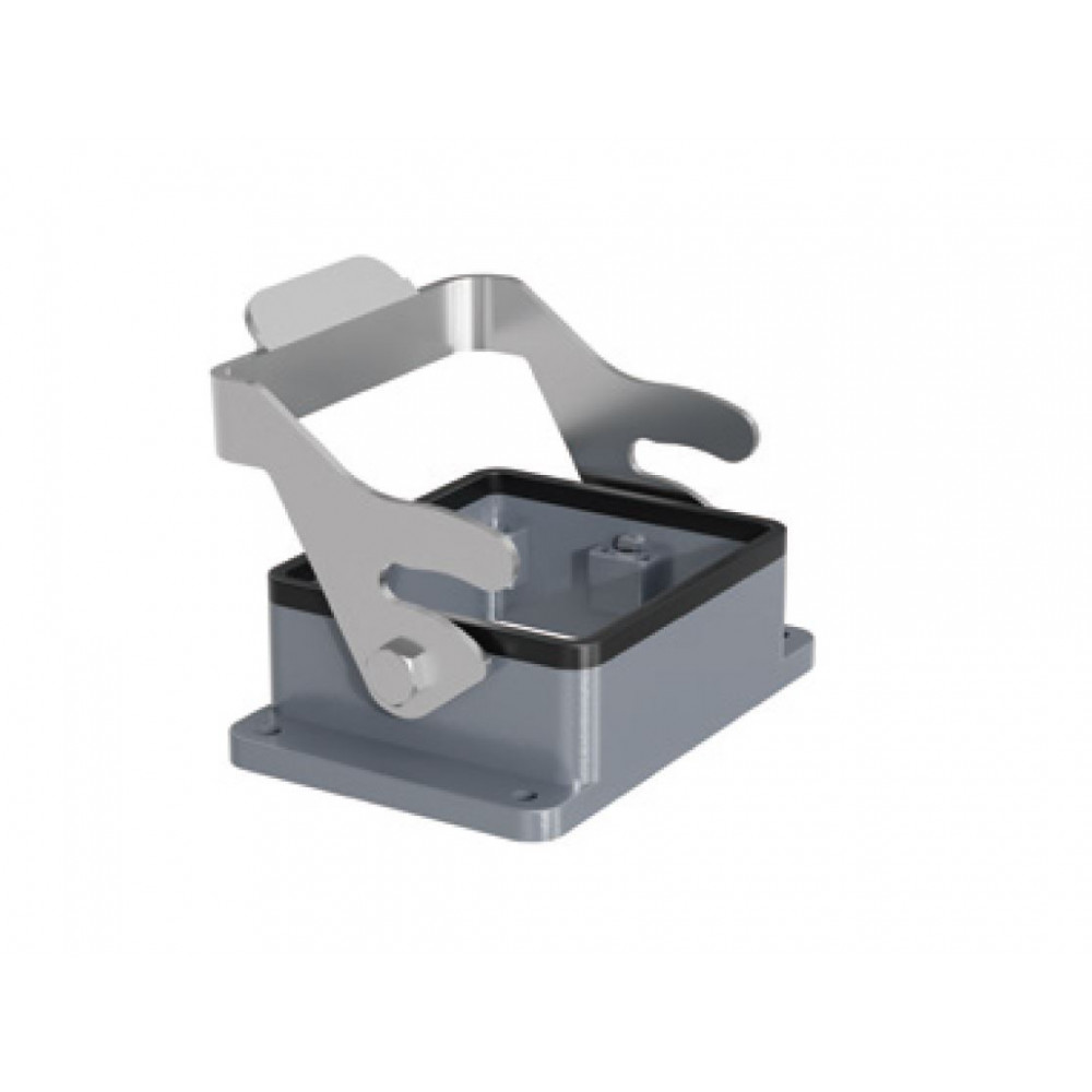 Открытое основание разъема H32B-OM-1L, Основание разъема на панель, открытое, типоразмер 32B, с уплотнителем, с одной металлической защелкой, без защитной крышки, материал корпуса: алюминиевый сплав